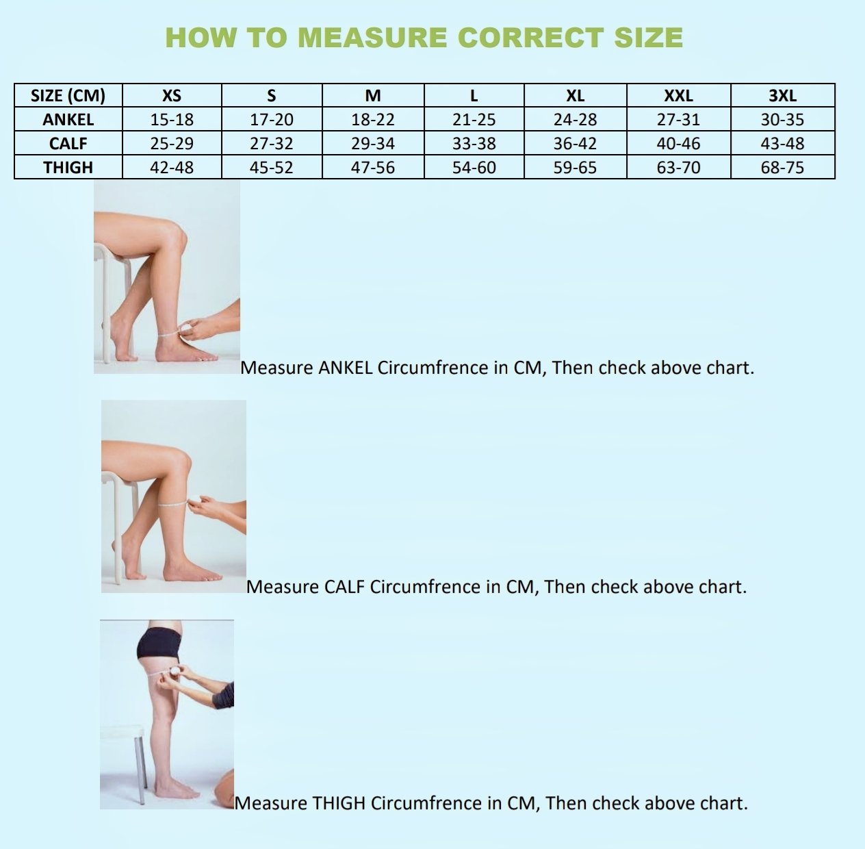 Graduated Compression (23-32mmHG) Provides the highest compression at the ankle(32mmHG) , gradually decreasing up the leg(23mmHG) to promote venous blood flow back to the heart.